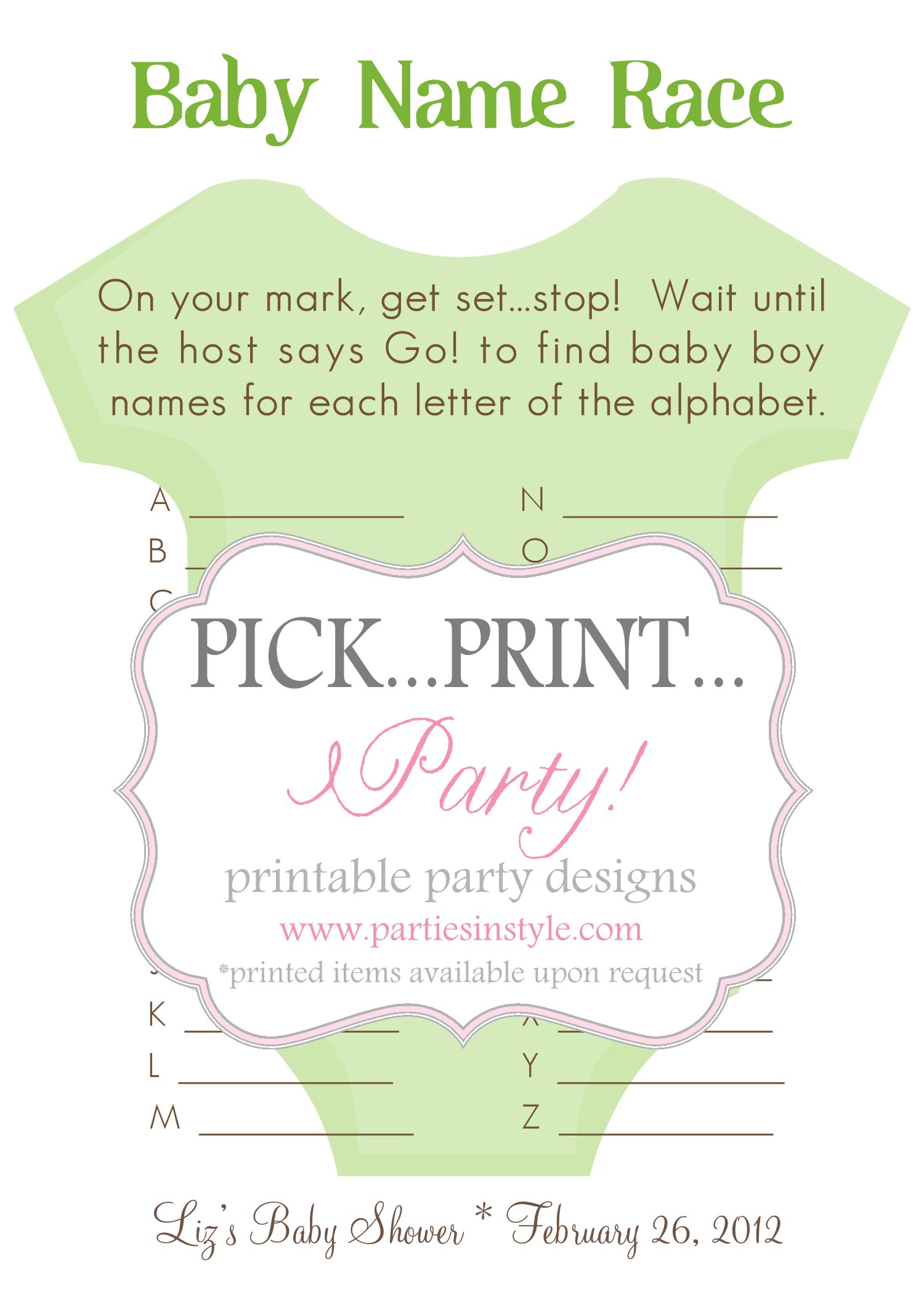 Not only will you and your guests have fun, but it will make the celebration even more memorable. Map out an area of land. These free baby shower games will make sure that your guests have a blast at the shower without you having to break the bank. Playdough babies is another fun game. Include sports games for male shower guests.